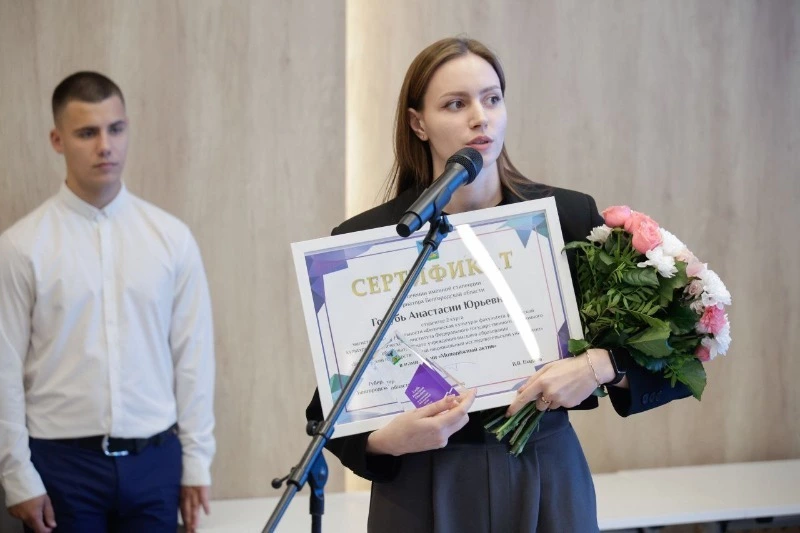 Анастасия Голубь дважды признана стипендиатом губернатора Белгородской области. В прошлом году были отмечены её достижения в науке (Настя – автор и соавтор более 20 научных статей), в нынешнем она получила сертификат и статуэтку в номинации «Молодёжный актив».
