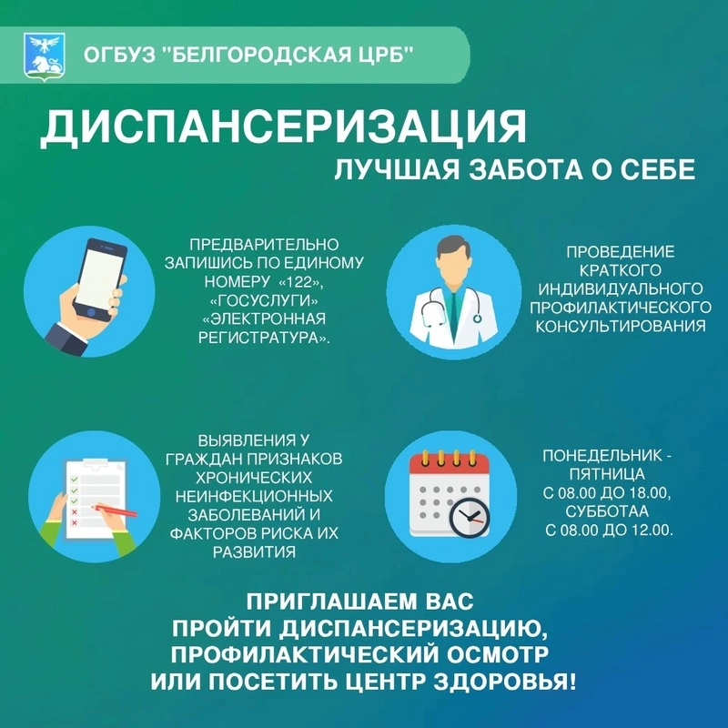 Жители Белгородского района могут пройти диспансеризацию в Белгородской ЦРБ. Подробностями поделились на официальной странице Белгородской ЦРБ в социальной сети «ВКонтакте».
