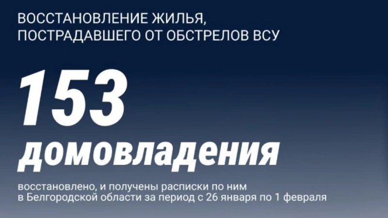 Вячеслав Гладков рассказал о восстановлении 153 пострадавших из-за атак ВСУ объектов в области. Губернатор проинформировал об этом в своём телеграм-канале.