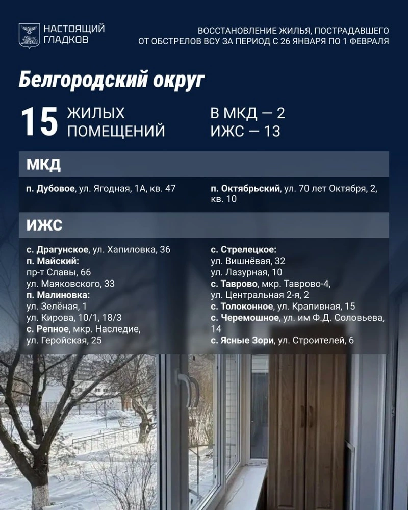 Всего с начала СВО в Белгородской области повреждено порядка 52 тыс. объектов. За это же время специалисты восстановили почти 47 тысяч домовладений.