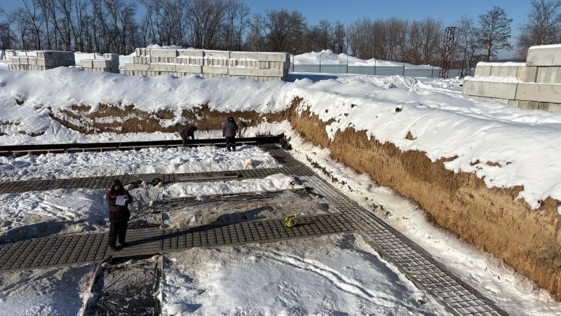 Сейчас на строительной площадке ведётся разработка грунта — это первый этап работ. Подрядная организация готовит основание под будущее здание и инженерные коммуникации.