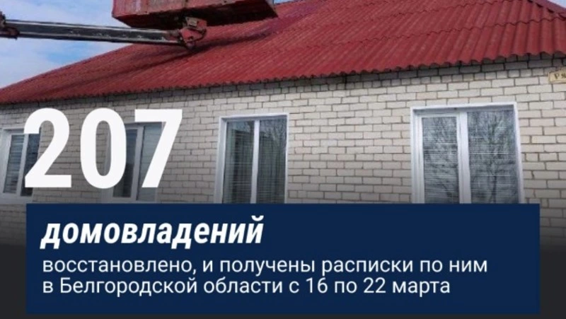 Вячеслав Гладков сообщил о восстановлении 207 домовладений в области за неделю. Губернатор проинформировал об этом в своих соцсетях.