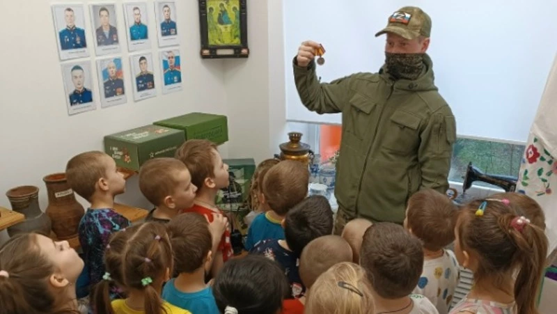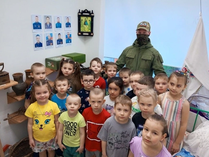 В завершение встречи ветеран передал в музей детского сада памятные экспонаты — солдатский ремень и бронежилет. Также он рассказал детям о наградах, которыми отмечают мужество и отвагу участников специальной военной операции.